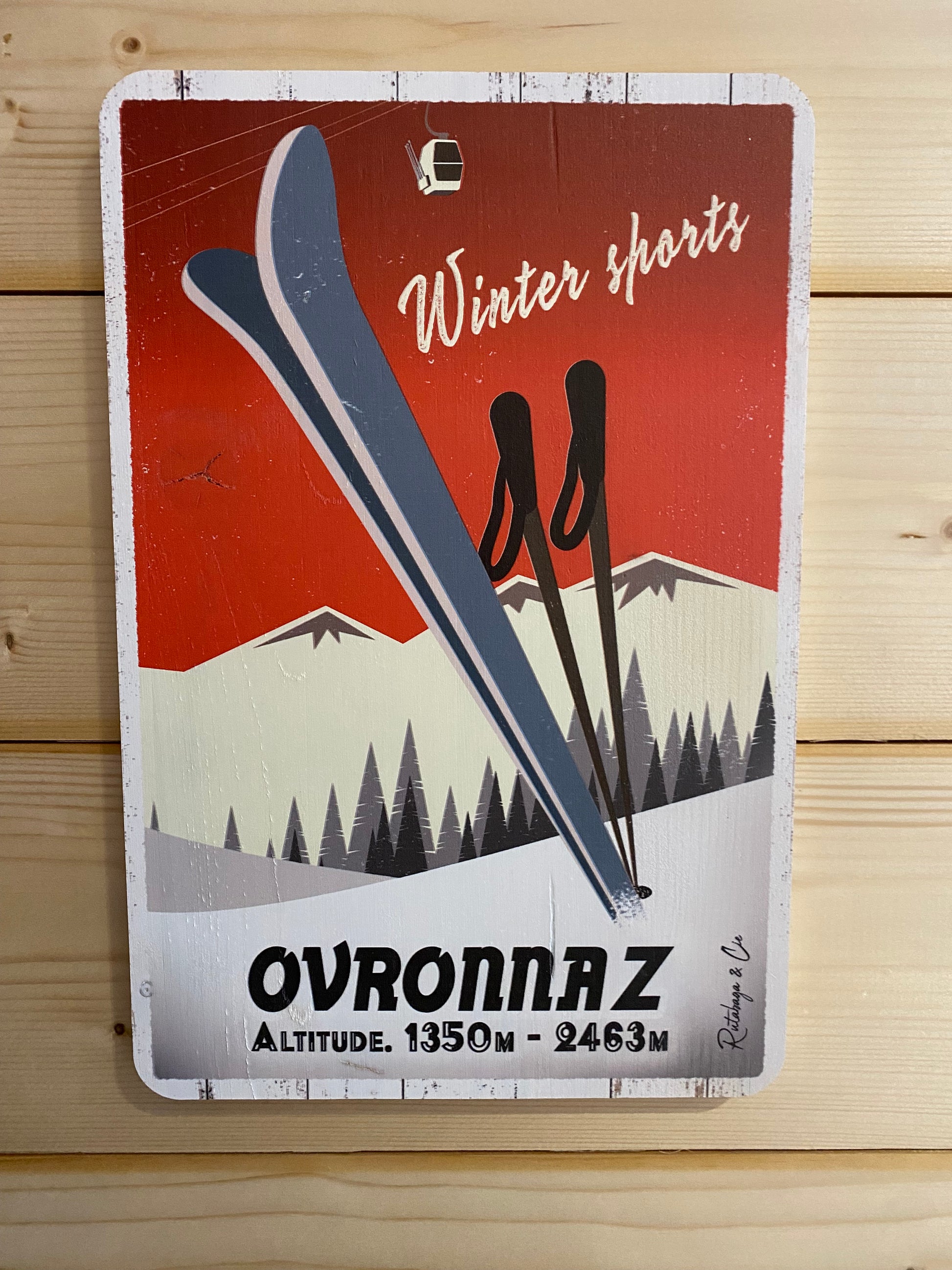 Cadre en bois randonneur avec inscription Ovronnaz.