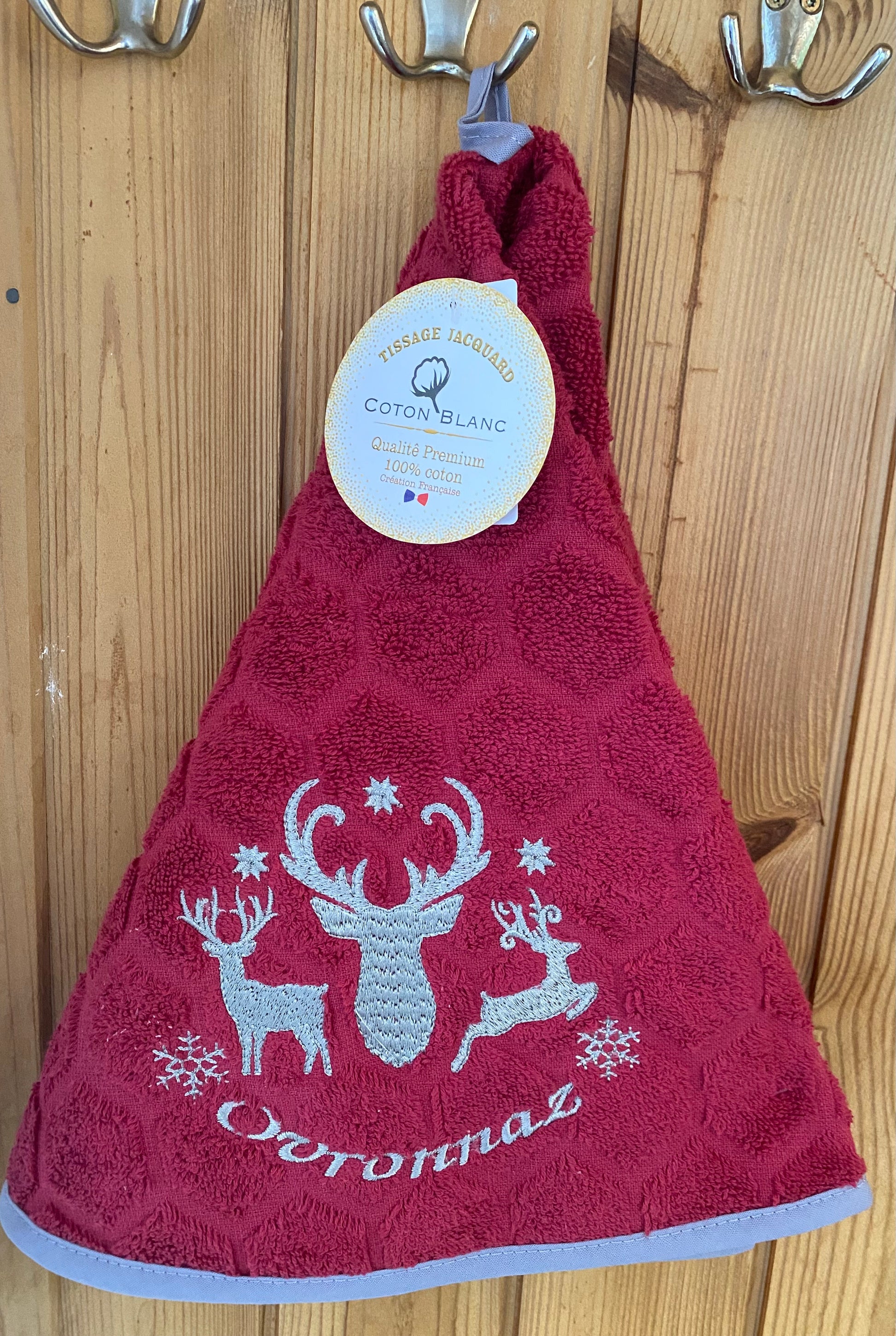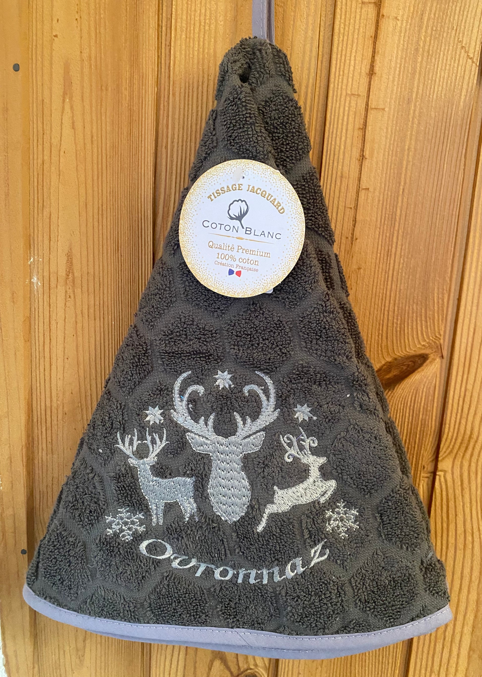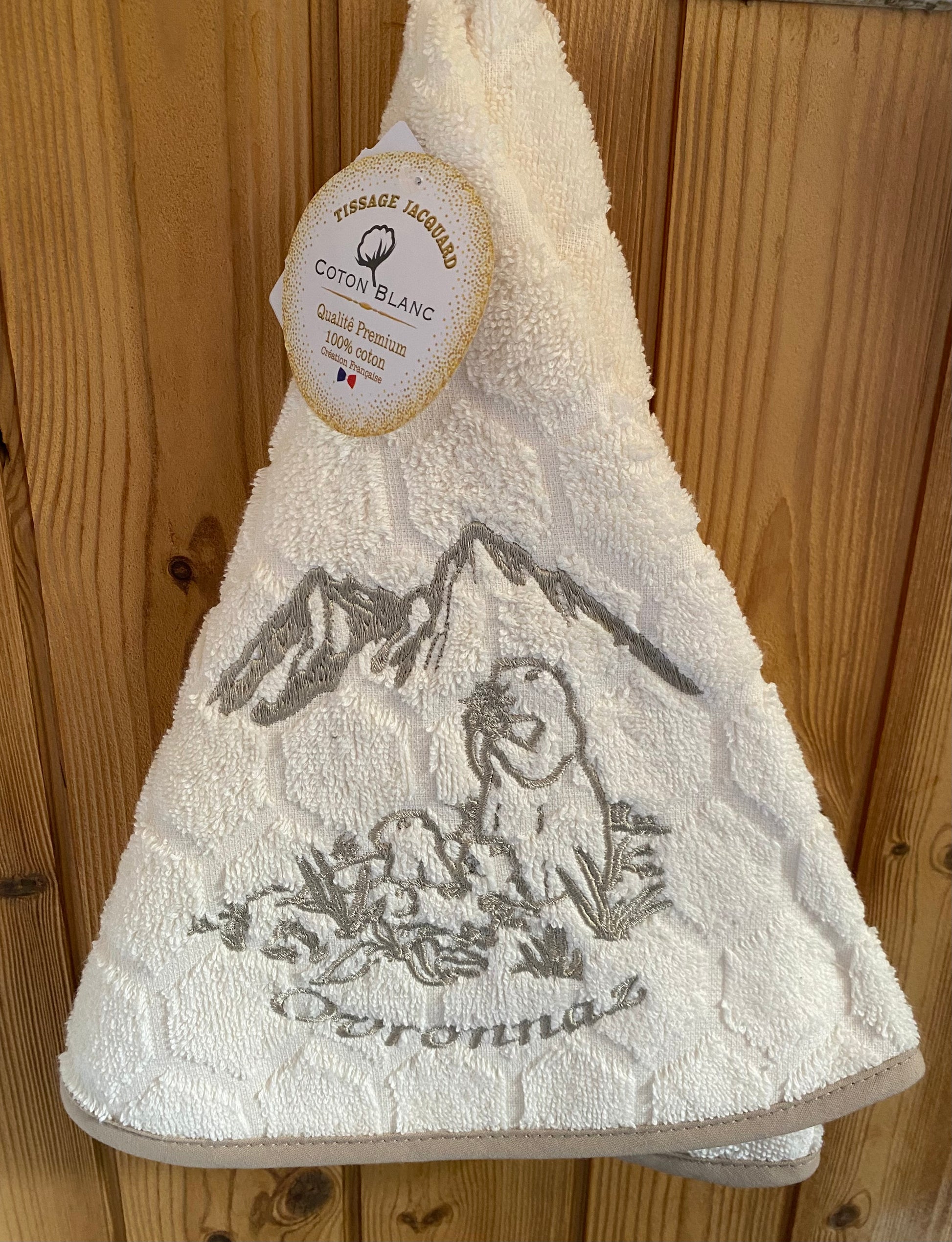Linge pour les mains 100% coton éponge, avec motif cerf ou marmotte.